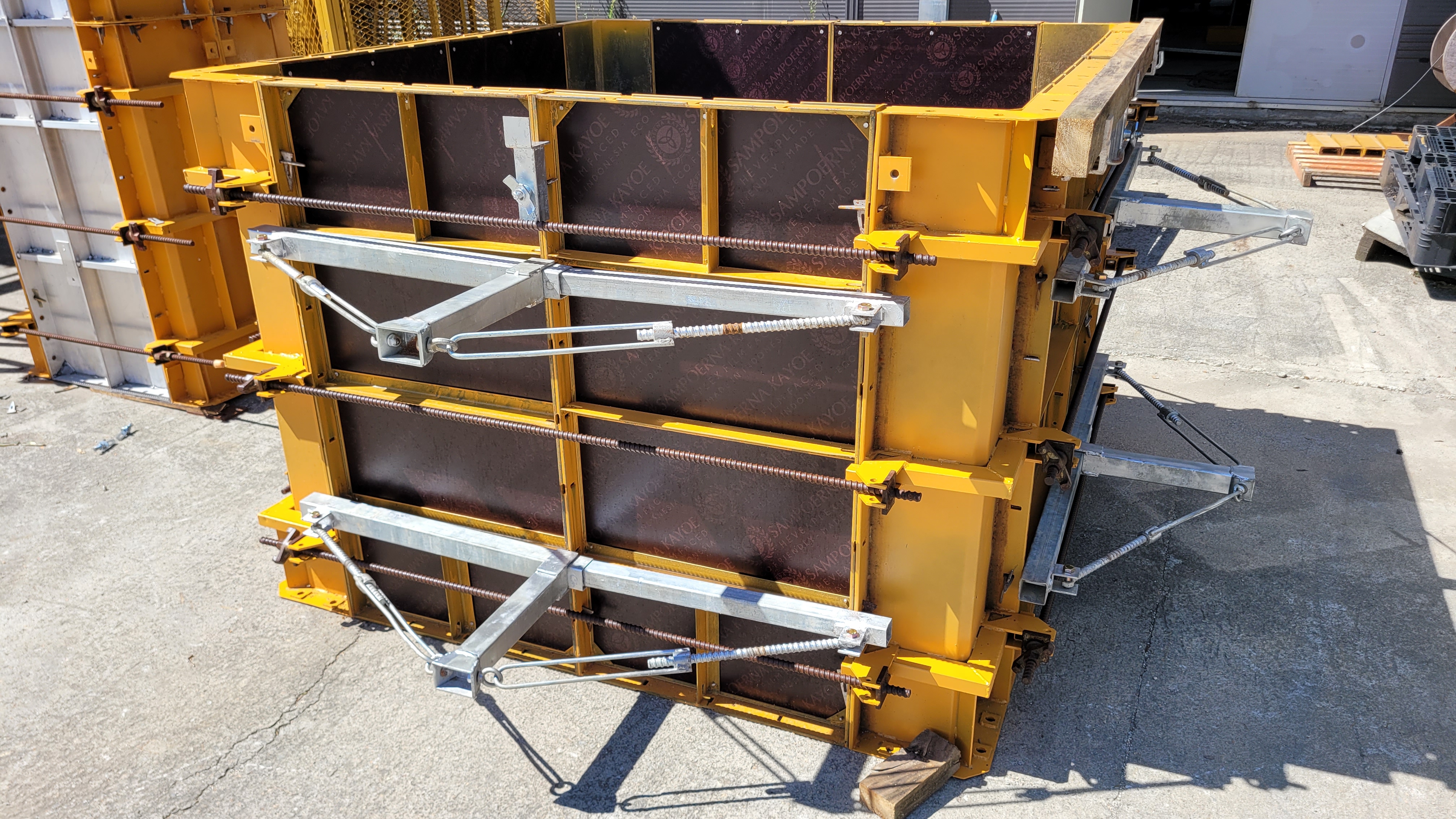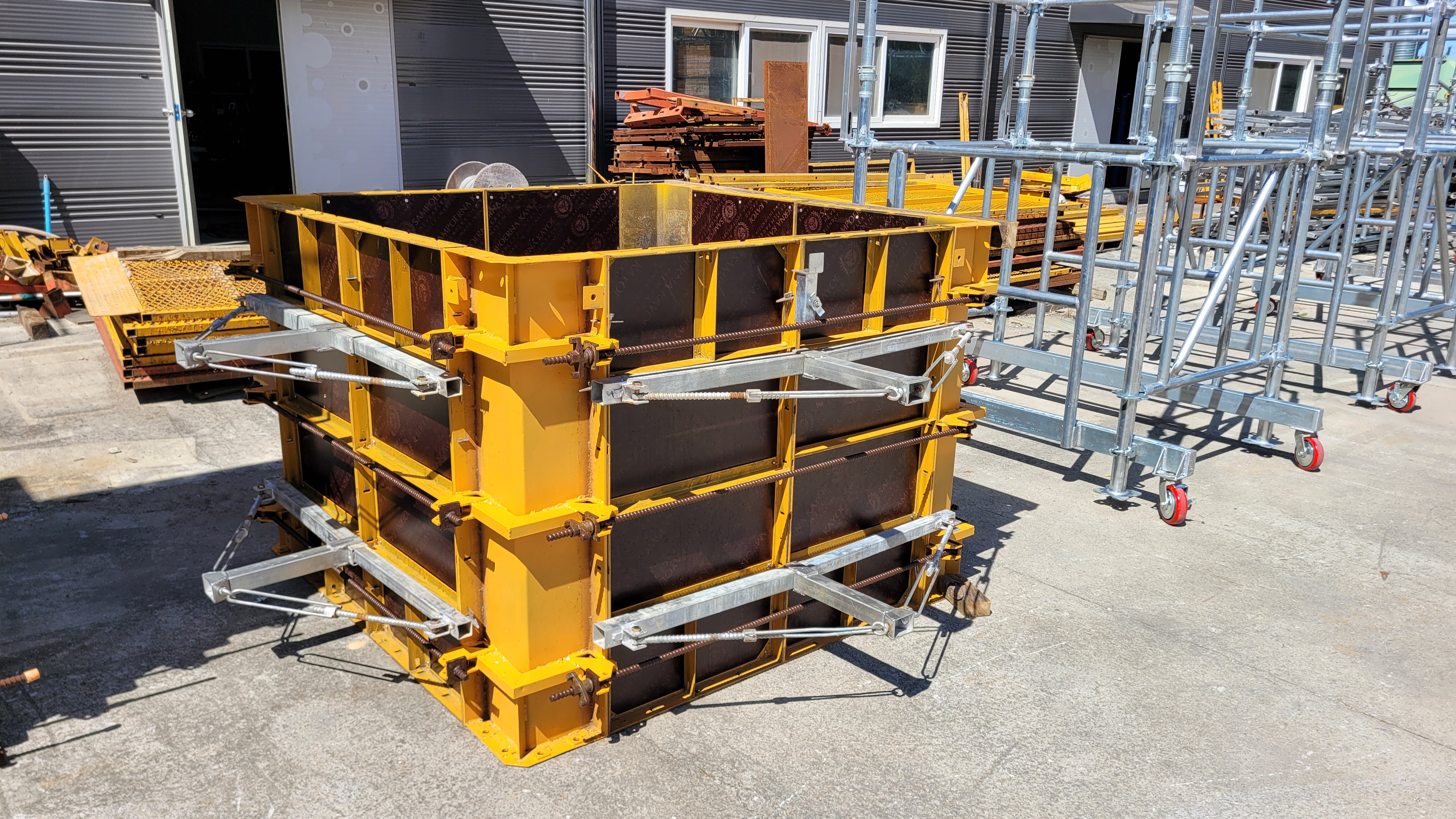 수작업 최적화 자재: 고강성 코너기둥 + 패널(보강유로폼,알폼) → 크레인 없이 1~2인 조립/해체 가능.
